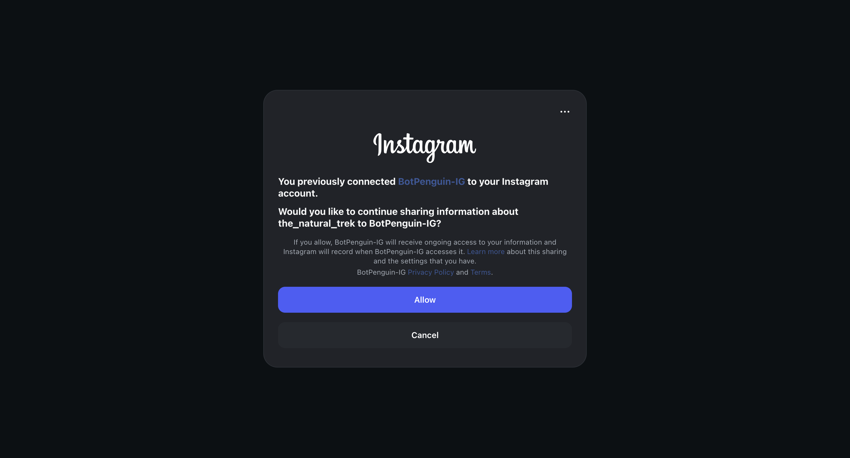 Go to your Instagram account Settings → Apps and Websites → find the BotPenguin app → click on it and reconnect. This resets the session and resolves most token or permission-related errors.
