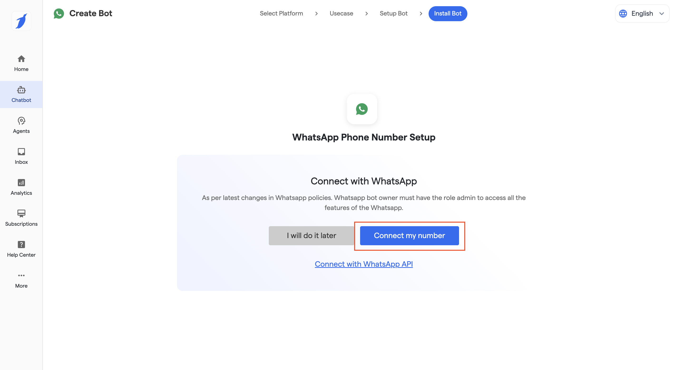 6. Click on **“Connect My Number”** to begin onboarding.