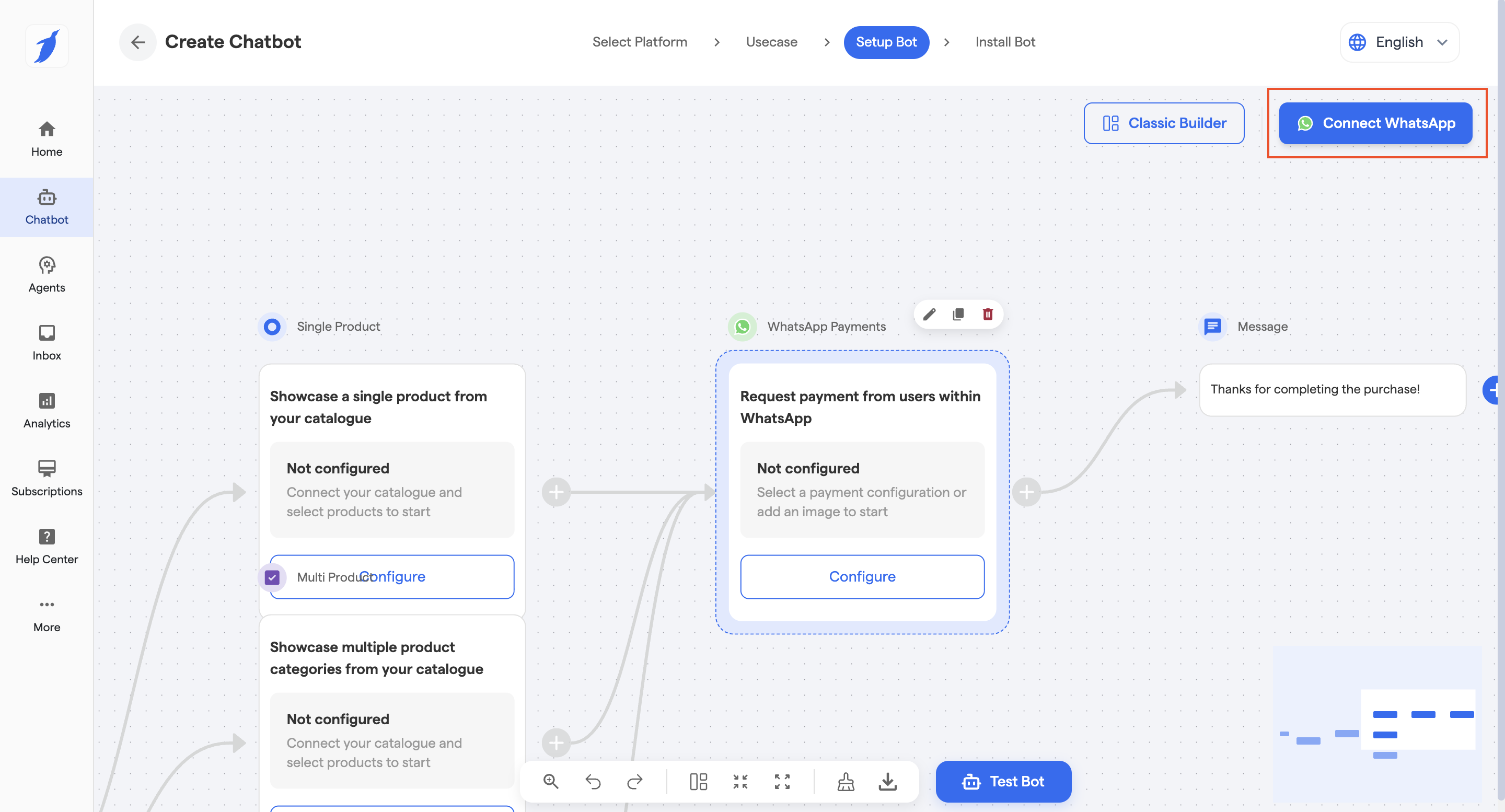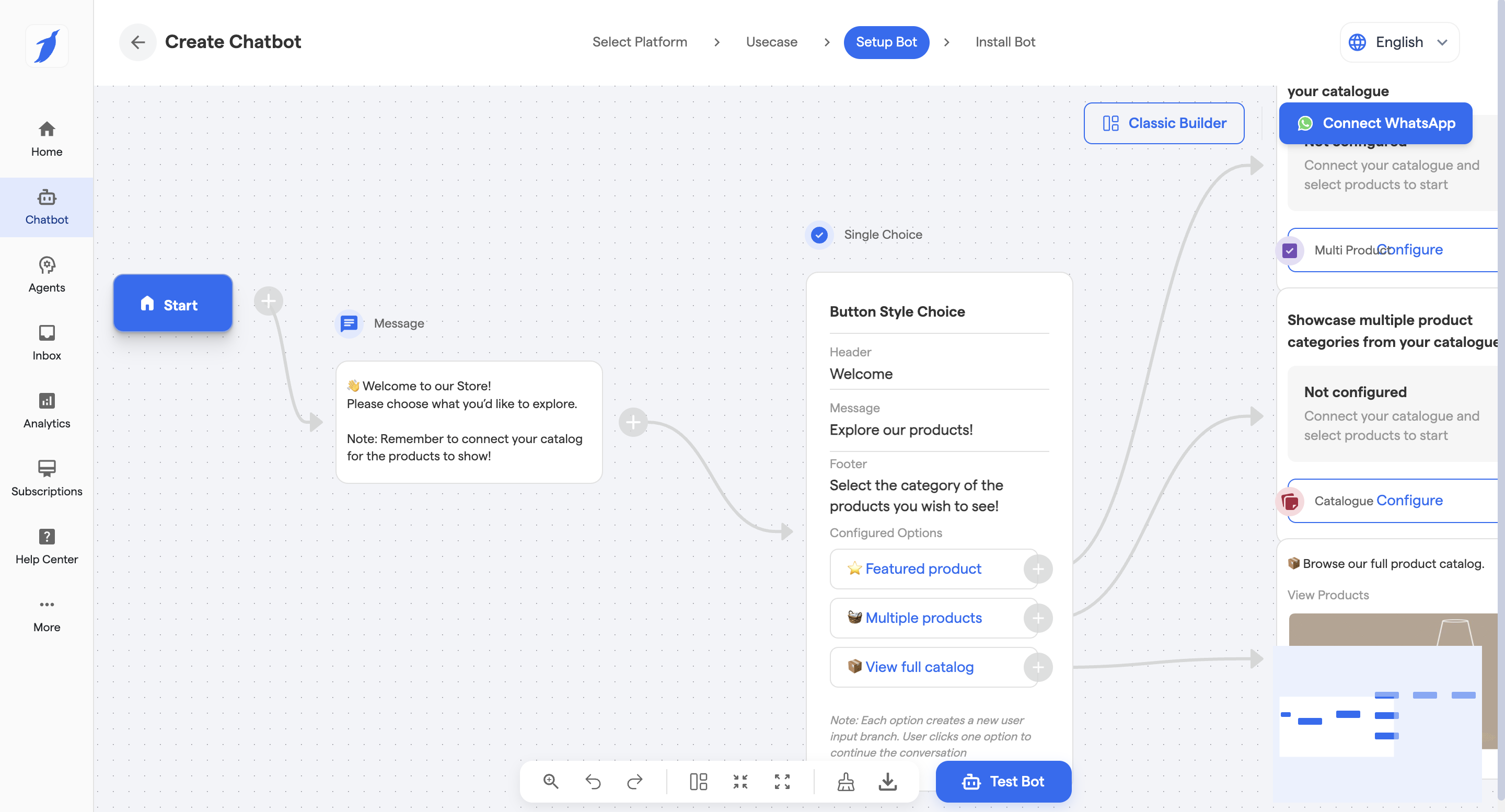 > 💡 Tip: Customize the generated chatflow before going live to align with your business use case.