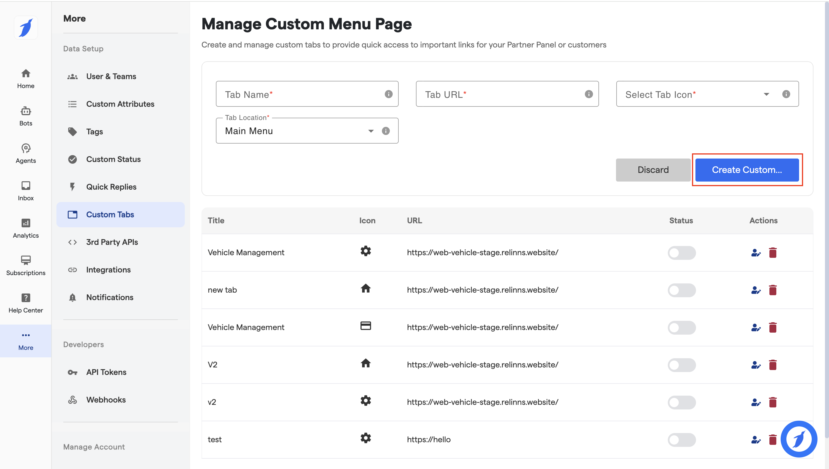 The new “Custom Tabs” feature is designed to enhance platform functionality by allowing customers to add and connect their own websites as tabs within BotPenguin. This enables a more personalized workspace, streamlining workflows and improving efficiency. This document provides a step-by-step guide on how to create and utilize “Custom Tabs.”