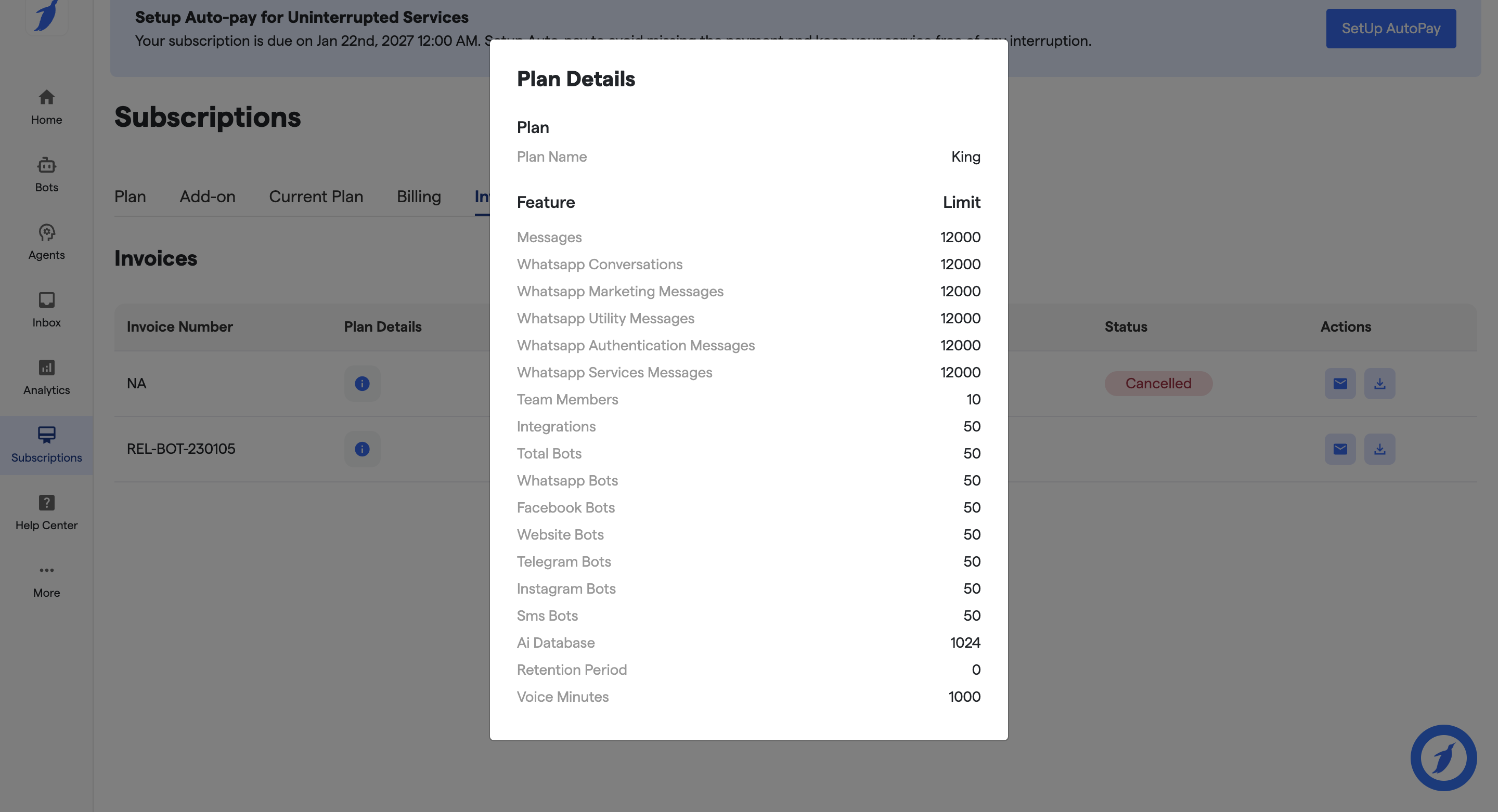 If you face any issues managing your subscription, contact **<support@botpenguin.com>** from the dashboard or reach out via the official support channels.